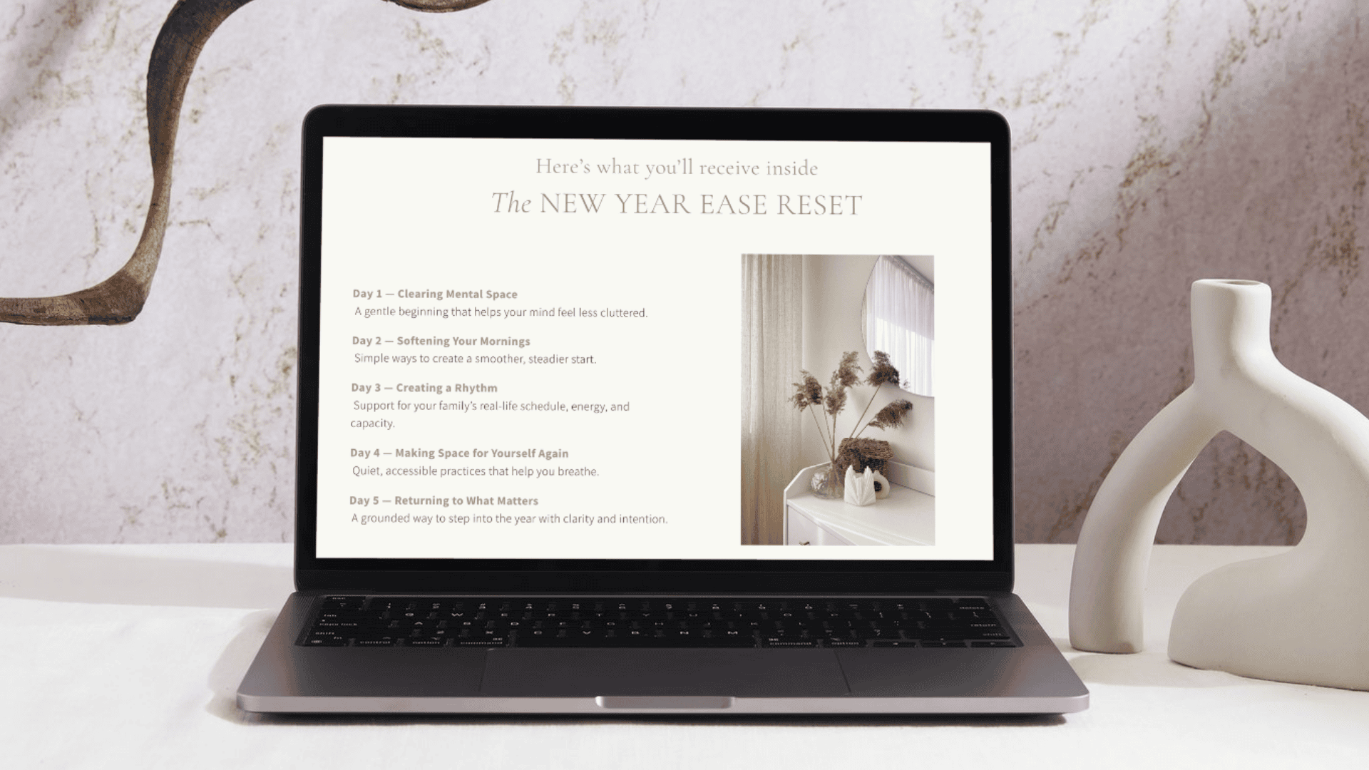 The initial website needed to explain the service simply, establish trust, and guide visitors towards a lead magnet, while setting the tone for a brand rooted in ease, care, and considered living.