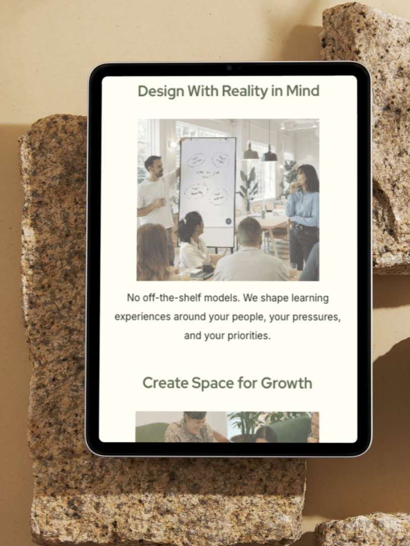 Designed as a flexible one-page foundation, the website can grow alongside the business as new programmes, events, and resources develop.