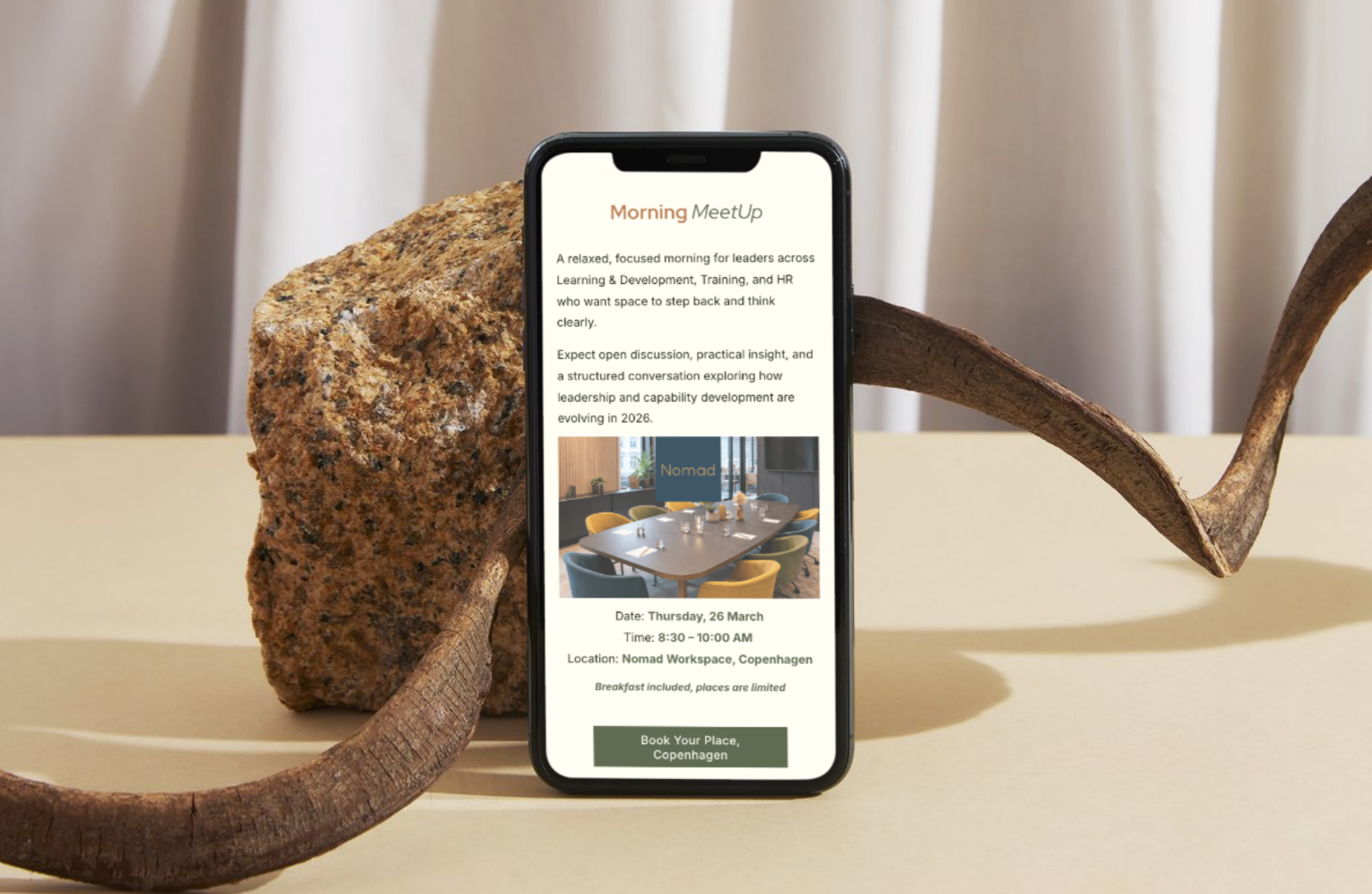 The goal was to create a simple one-page website that introduces her approach, supports upcoming events in Copenhagen and Dublin, and provides an easy way for organisations to start a conversation.