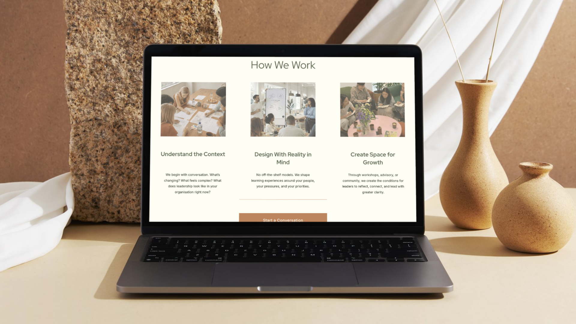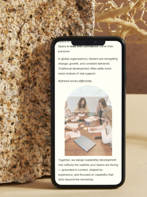 The result is a clear, warm, and professional digital home for Reframd that brings together Rowena’s leadership philosophy, services, and events in one place.
